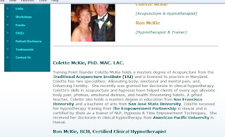 Speaking of the McKie's, her husband Ron McKie, who also operates "Turning Point Hypnotherapy Strategies and Acupuncture," claims to have a Bachelor's Degree in Clinical Hypnotherapy from the same degree mill. Ron claims to be a member of the National Guild of Hypnotists, who supposedly has a code of ethics. Except when it has to do with fake degrees.